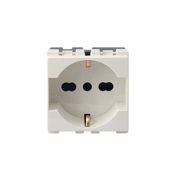 Lleva una forma particular llamado Shucko, para ciertos electrodomésticos del hogar, tiene 2 contactos redondos y uno que proporciona un contacto seguro a “tierra” en el centro